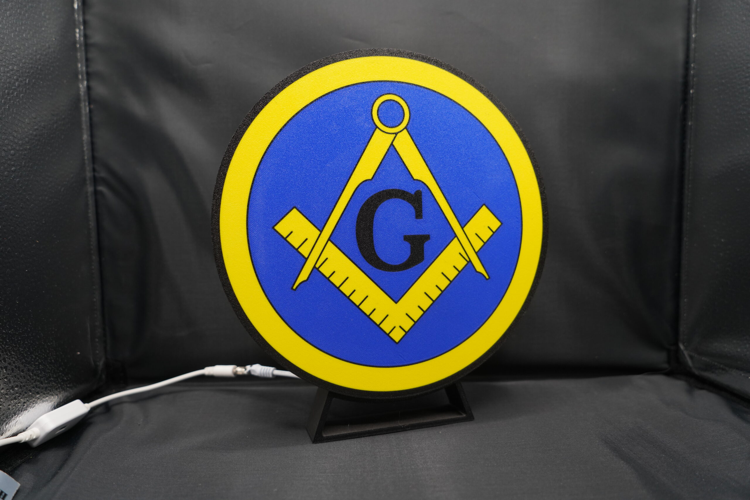 Diese detailreiche Leuchtplatte vereint modernes 3D-Druck-Design mit symbolischer Tiefe. Das klassische Emblem aus Winkelmaß und Zirkel steht für Maß, Ordnung und geistige Arbeit – das „G“ im Zentrum erinnert an die Suche nach Erkenntnis und dem göttlichen Prinzip.